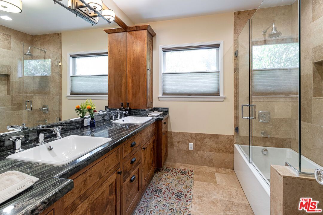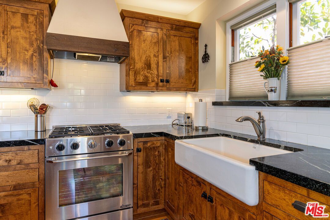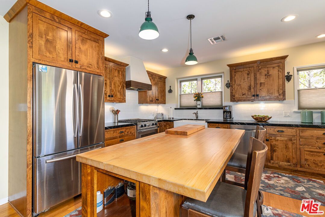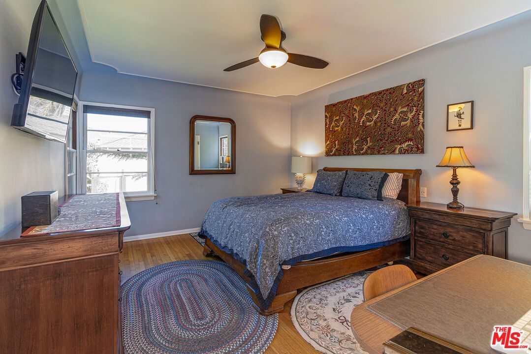 Experience true architectural romance in this beautifully preserved 1940 Spanish-style single family home in Reynier Village, the Beverlywood-adjacent enclave prized for its central West Los Angeles address. Step inside to an inviting living room awash in natural light, highlighted by classic dark wood beamed ceilings, original wood floors, and a handsome wood-burning fireplace that promises both warmth and charm. The signature archway opens to an expansive eat-in island kitchen featuring custom wood cabinetry, rich soapstone countertops, a porcelain farmhouse sink, and sleek stainless steel appliances perfect for the home chef and entertainer alike. Your culinary creations are complemented by a sunny rear deck shaded for year-round alfresco dining and relaxation over-looking a lush, private backyard and vegetable garden, delivering an effortless indoor-outdoor lifestyle. Discover a sophisticated hall bath showcasing double sinks, natural stone counters, and seamless glass shower wrapped in travertine tile flooring for a luxurious touch. Both spacious bedrooms provide restful retreats with efficient central air and heating for comfort in any season. The detached garage provides endless possibilities; imagine your dream ADU, dedicated home office, dynamic yoga and/or pilates studio, or creative workspace. The prime location gives immediate access to downtown Culver City, Beverly Hills, and Century City, plus the Expo line and 10 freeway options for quick beach excursions or downtown adventures, whether it's concerts, sports, or theatre. Timeless character, thoughtful updates, and an unbeatable location make this Spanish gem the kind of opportunity buyers dream about and one that's destined to be the heart of unforgettable Westside living.